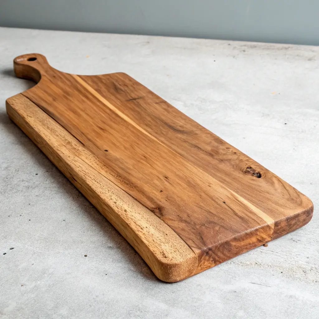 Una elegante tabla de servir de madera de laurel, elaborada para presentar proteínas y asados. Su veta de madera rica y cálida añade un toque de sofisticación a cualquier mesa. La construcción robusta asegura que pueda soportar porciones pesadas mientras mantiene su belleza con el tiempo. Ideal para servir quesos, carnes y otras exquisiteces con estilo.